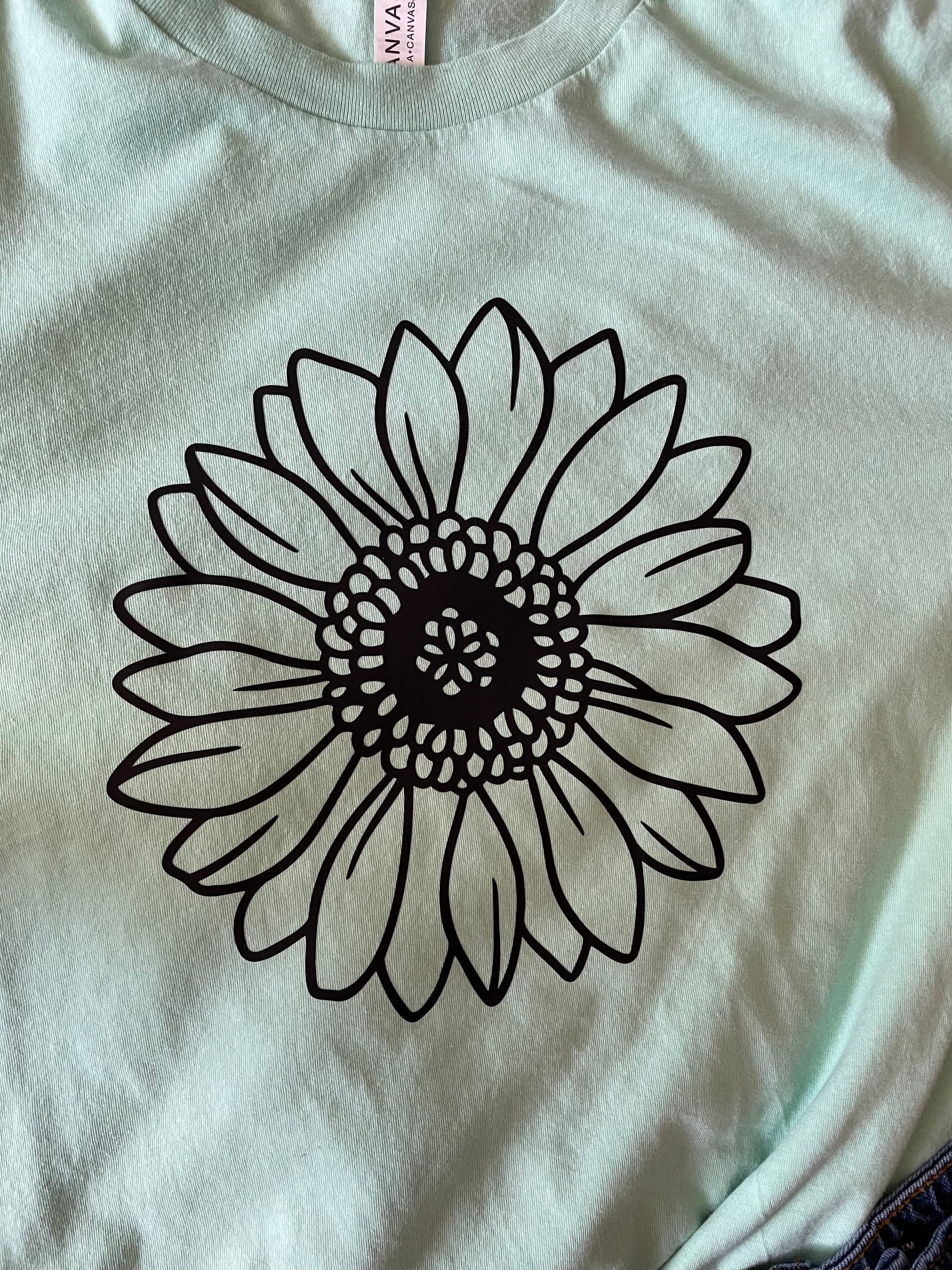 Pretty and simple this cute flower tee available in our mint color is a great addition to your spring wardrobe. Bella + Canvas tee. Relaxed fit true to size.